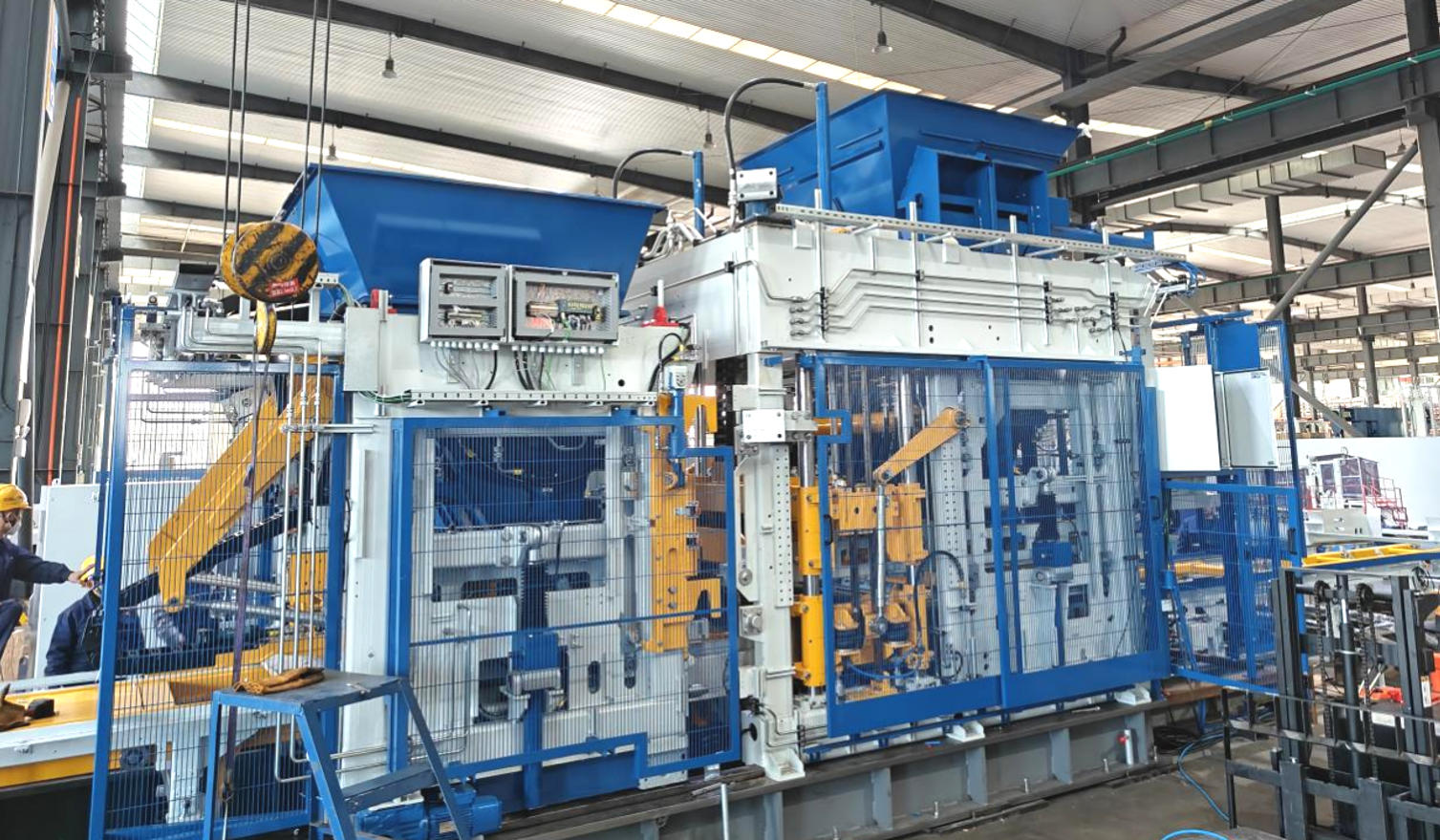 പ്രോജക്റ്റ് നടപ്പിലാക്കുമ്പോൾ, ഇഷ്ടിക നിർമ്മാണ ഉപകരണങ്ങളുടെ ഇൻസ്റ്റാളേഷൻ കൃത്യത, പാരാമീറ്റർ കോൺഫിഗറേഷൻ, സിസ്റ്റം സംയോജനം എന്നിവ തുടർന്നുള്ള ഉൽപ്പാദന സ്ഥിരതയെയും പൂർത്തിയായ ബ്ലോക്കുകളുടെ ഗുണനിലവാരത്തെയും നേരിട്ട് ബാധിക്കുന്നു. ഹൈ-എൻഡ് നോൺ-ഫയർഡ് ബ്രിക്ക് മെഷീനുകളിലും ബ്ലോക്ക് രൂപീകരണ ഉപകരണങ്ങളിലും വർഷങ്ങളോളം വൈദഗ്ധ്യം പ്രയോജനപ്പെടുത്തി, സെനിറ്റ് എഞ്ചിനീയർമാർ നിർണായക പ്രക്രിയകളിൽ സജീവമായി പങ്കെടുത്തു. ക്വാൻ ഗോങ് ടെക്നീഷ്യൻമാരുമായി ചേർന്ന് പ്രവർത്തിച്ചുകൊണ്ട്, പ്രധാന മെഷീൻ്റെ വൈബ്രേഷൻ സിസ്റ്റം, മെറ്റീരിയൽ ഡിസ്ട്രിബ്യൂഷൻ ഡിവൈസ്, ഹൈഡ്രോളിക്/ഇലക്ട്രിക്കൽ കൺട്രോൾ സിസ്റ്റങ്ങൾ എന്നിവ വ്യവസ്ഥാപിതമായി ഡീബഗ് ചെയ്യുകയും ഒപ്റ്റിമൈസ് ചെയ്യുകയും ചെയ്തു. വൈവിധ്യമാർന്ന തൊഴിൽ സാഹചര്യങ്ങളിൽ ഉപകരണങ്ങൾ കാര്യക്ഷമവും സുസ്ഥിരവുമായ പ്രവർത്തനം നിലനിർത്തുന്നുവെന്ന് ഇത് ഉറപ്പാക്കുന്നു.